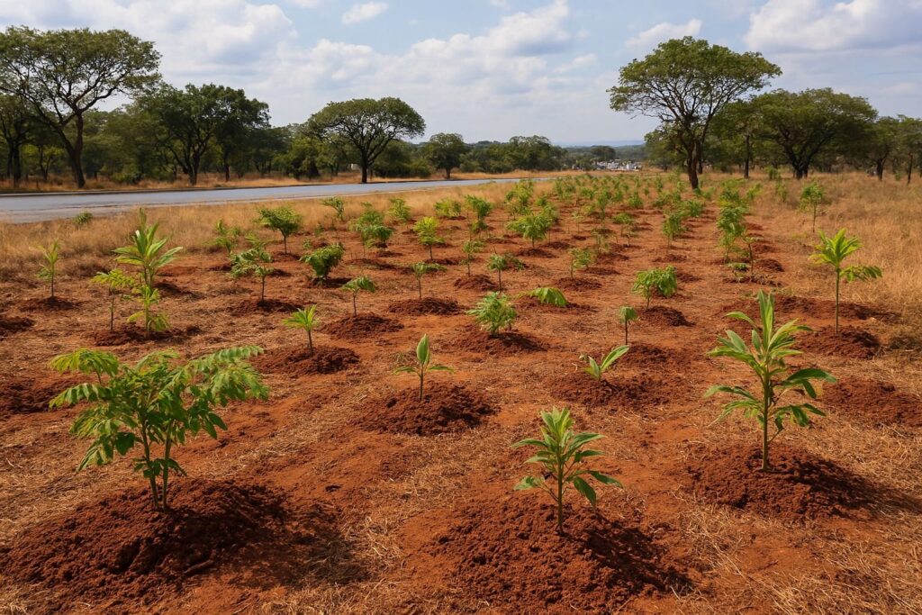 As espécies escolhidas são nativas do Cerrado, como ipês e aroeiras, além de frutíferas que atendem à fauna local. Essa diversidade fortalece o equilíbrio ecológico e contribui para a retenção da água da chuva, evitando voçorocas e erosões.